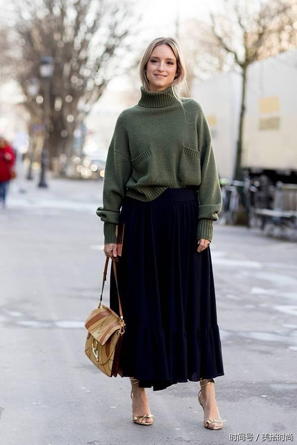 基礎(chǔ)色高領(lǐng)毛衣本身就是優(yōu)雅之選,搭配衣櫥里你喜歡的裙子,都會(huì)是個(gè)很好看的look~