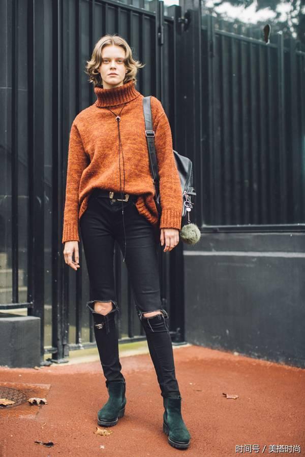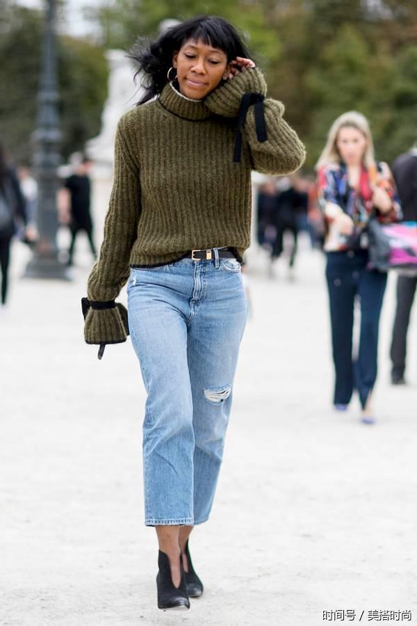 相較之下,短款高領(lǐng)衫更適合個(gè)子?jì)尚〉呐p松穿出大長(zhǎng)腿。