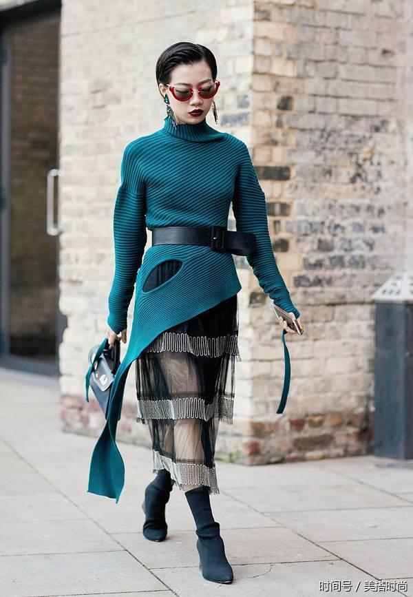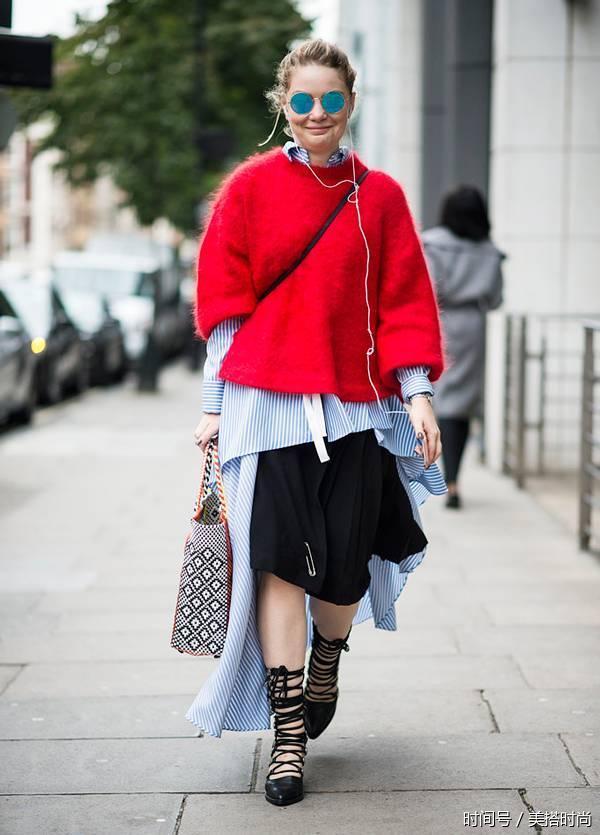 你的毛衣甚至可以拿來當(dāng)做連衣裙,跟裙子褲子疊穿搭配。不規(guī)則下擺毛衣會(huì)讓你更有范兒。