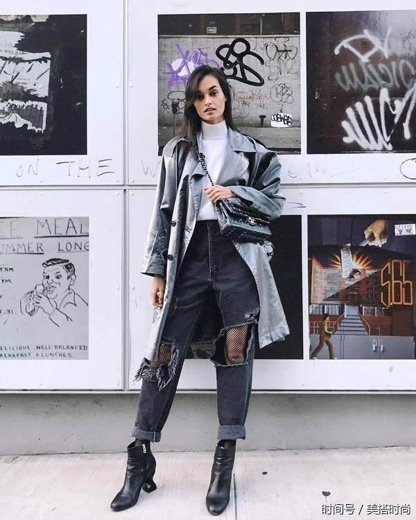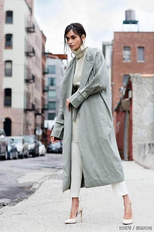 目測(cè)一米八的大長(zhǎng)腿,就算是用常人無(wú)法駕馭的方法穿褲子,也顯得特別高。或者說(shuō),褲子的長(zhǎng)度根本就不適合她的大長(zhǎng)腿~銀灰色風(fēng)衣搭配高領(lǐng)打底衫,酷勁兒夠足。